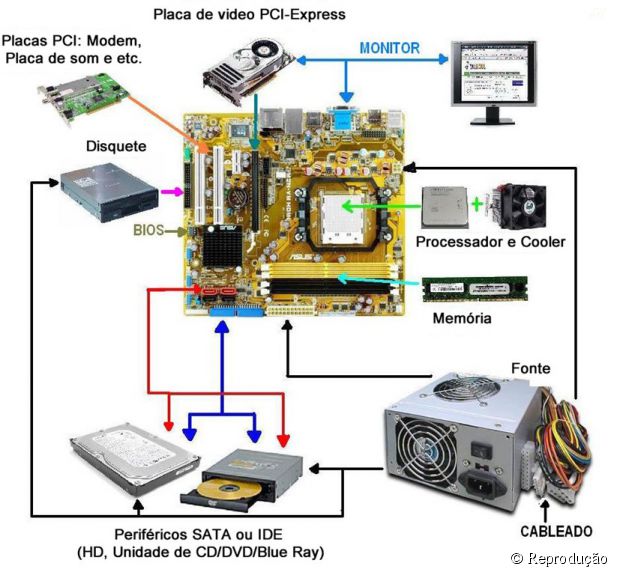 Obs: Gabinete é aquela caixa grande que chamamos de CPU, embora a verdadeira CPU esteja dentro do gabinete e seja menor do que a palma de nossa mão