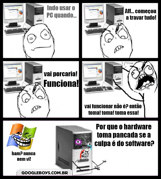 Agora você sabe do que reclamar quando seu computador travar.. a depender do problema, será o software e não o hardware ̶n̶ã̶o̶ ̶a̶c̶h̶e̶ ̶q̶u̶e̶ ̶é̶ ̶i̶g̶u̶a̶l̶ ̶a̶ ̶t̶v̶ ̶v̶e̶l̶h̶a̶ ̶d̶a̶ ̶s̶u̶a̶ ̶a̶v̶ó̶ ̶q̶u̶e̶ ̶f̶u̶n̶c̶i̶o̶n̶a̶ ̶n̶a̶ ̶b̶a̶s̶e̶ ̶d̶e̶ ̶p̶a̶n̶c̶a̶d̶a̶s̶
